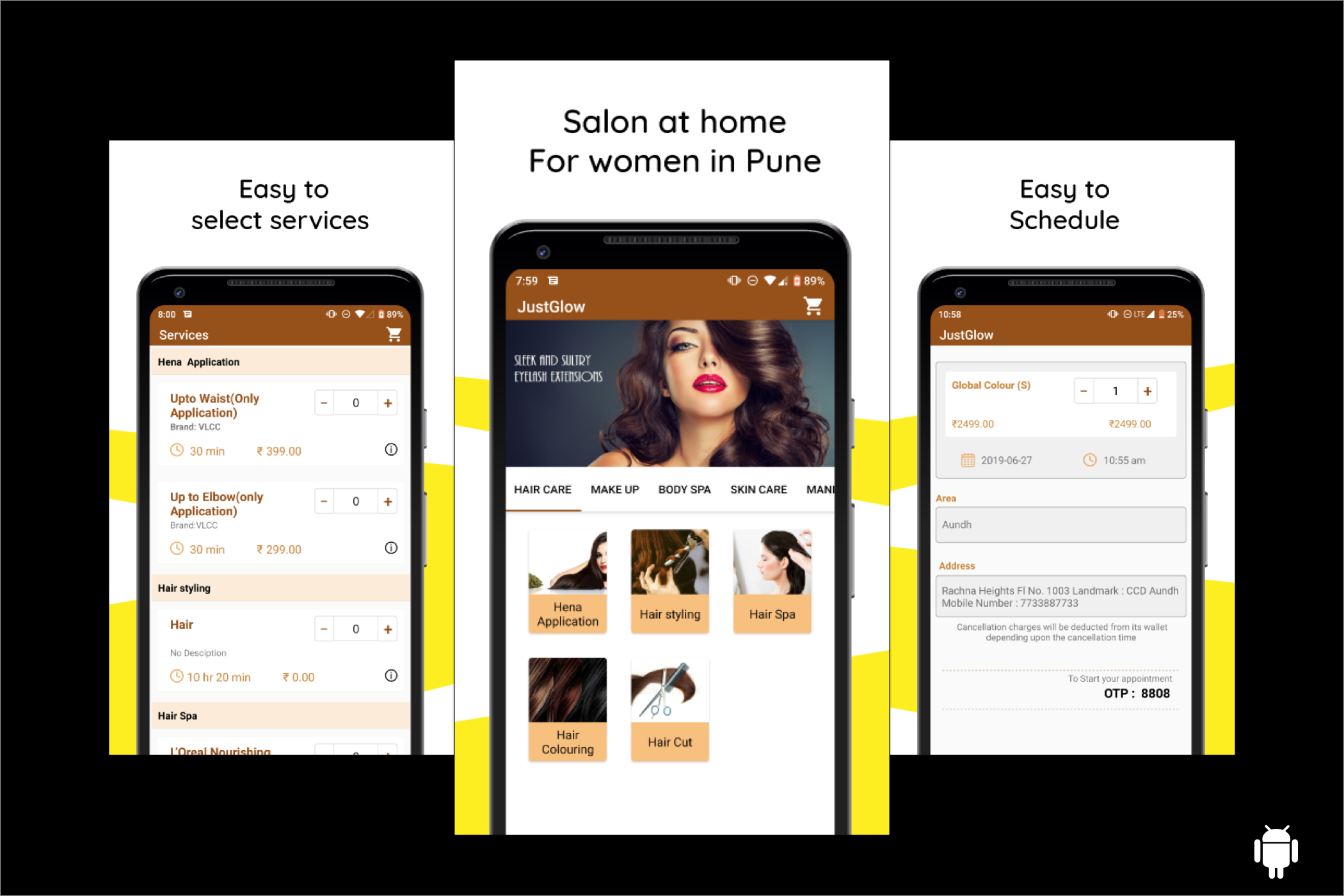 JustGlow is the home delivery beauty service. In which user can book service and admin can assign the technician for that service